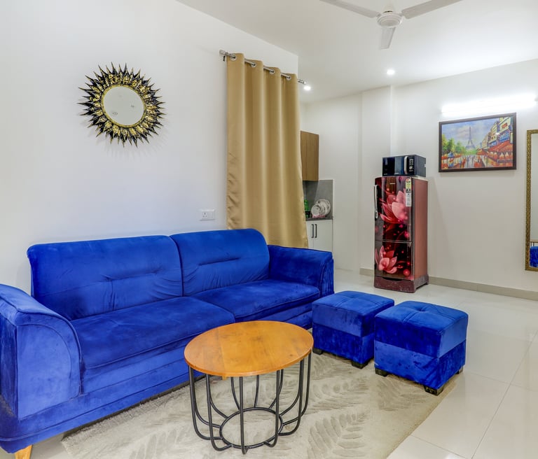 Comfortable serviced apartments in West-Delhi, blending homely warmth with hotel convenience.