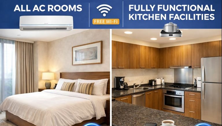 All AC Rooms with Free Wi-fi and Fully Functional Kitchen Facilities